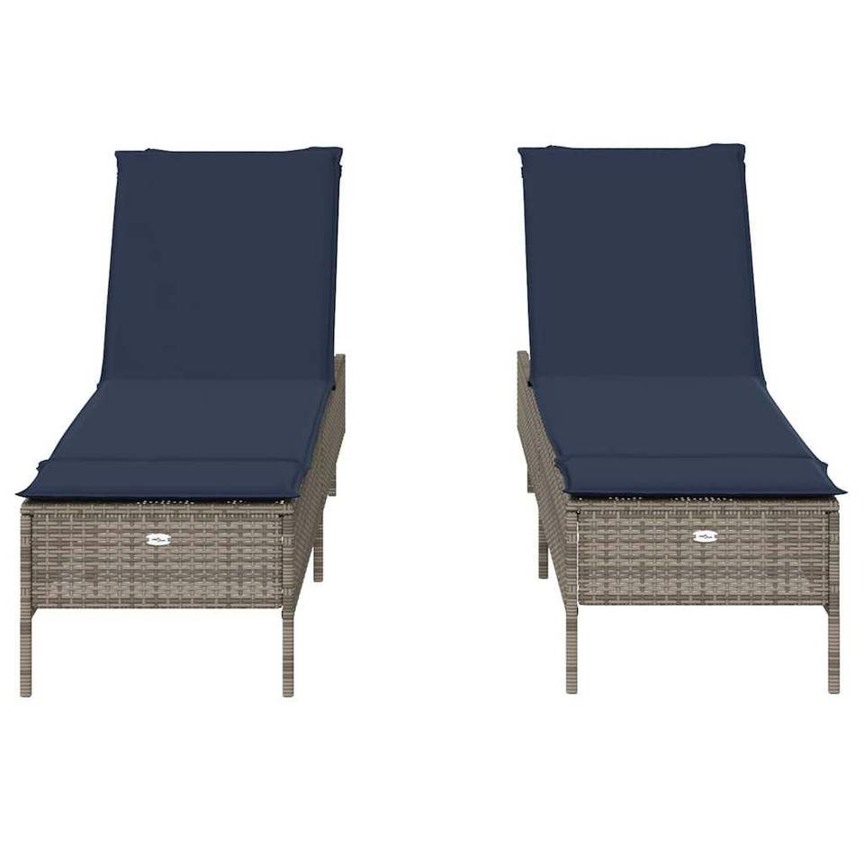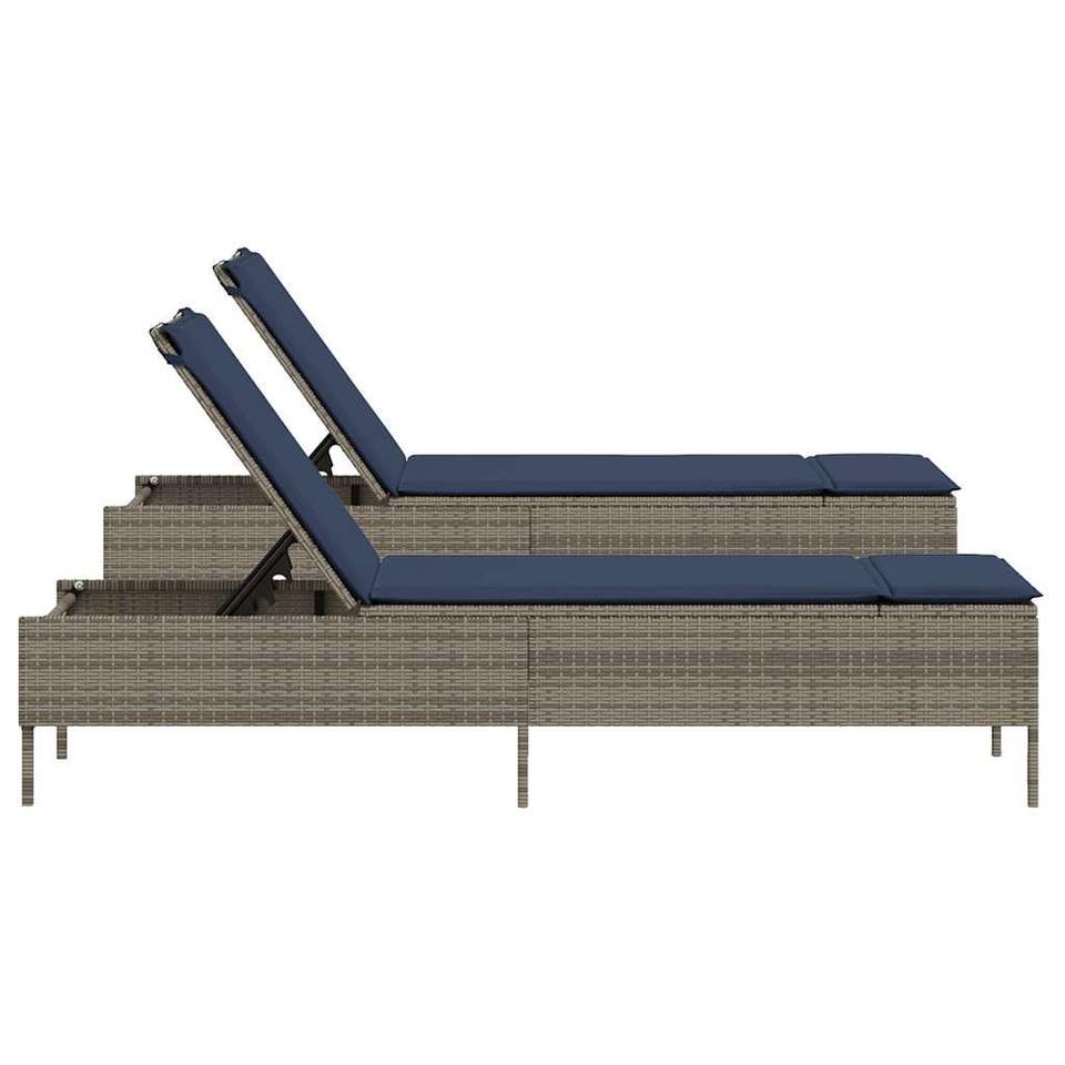 Chaise longue de patio réglable en rotin PE gris avec accoudoirs standard