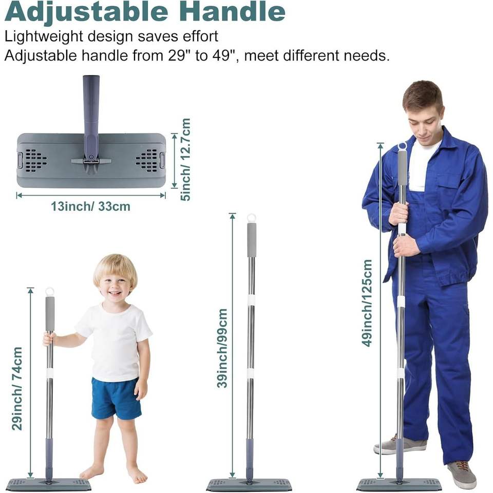 Serpillère en microfibre à manche réglable 29-49 pouces, serpillère plate avec 3 tampons pour sols en bois dur, utilisation humide/sèche, nettoyage de la poussière et des sols