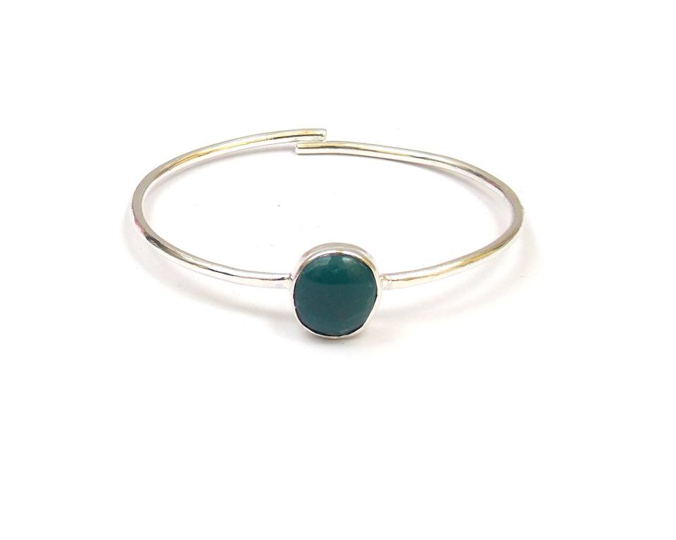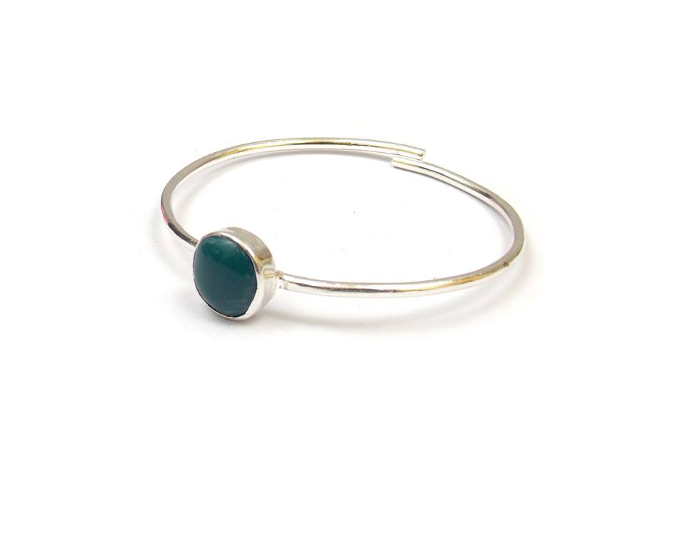 Bracelet jonc ajustable fait main avec onyx vert