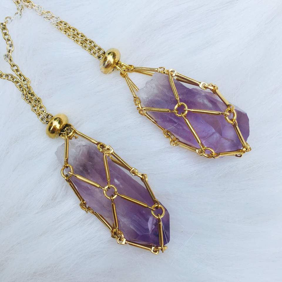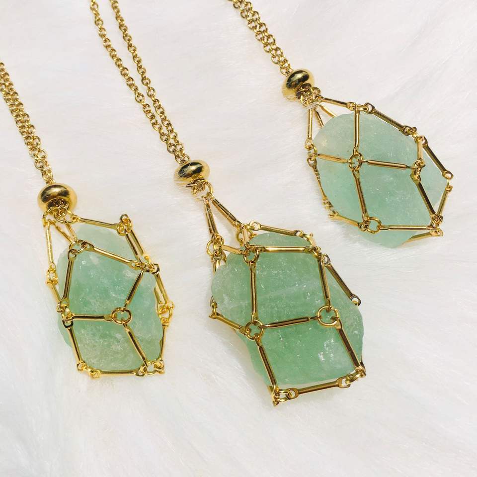 Collier ajustable en pierre naturelle de guérison Collier à chaîne en maille d'acier inoxydable Collier à pendentif en pierre de cristal