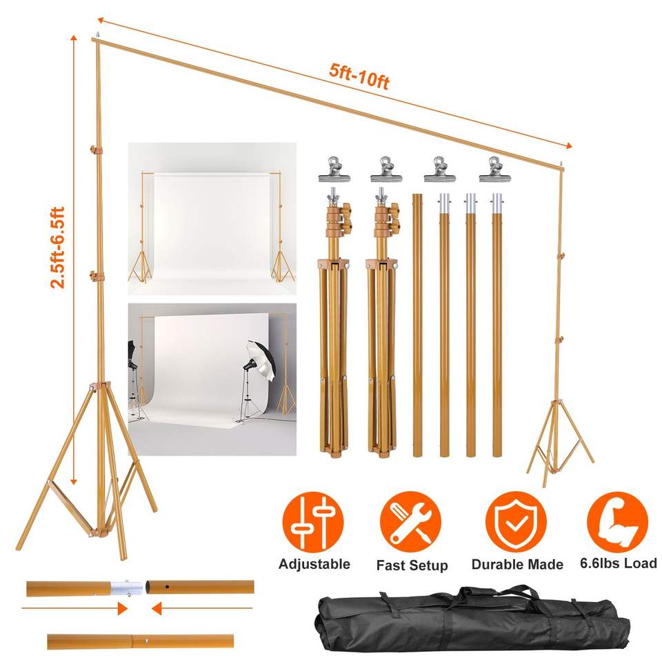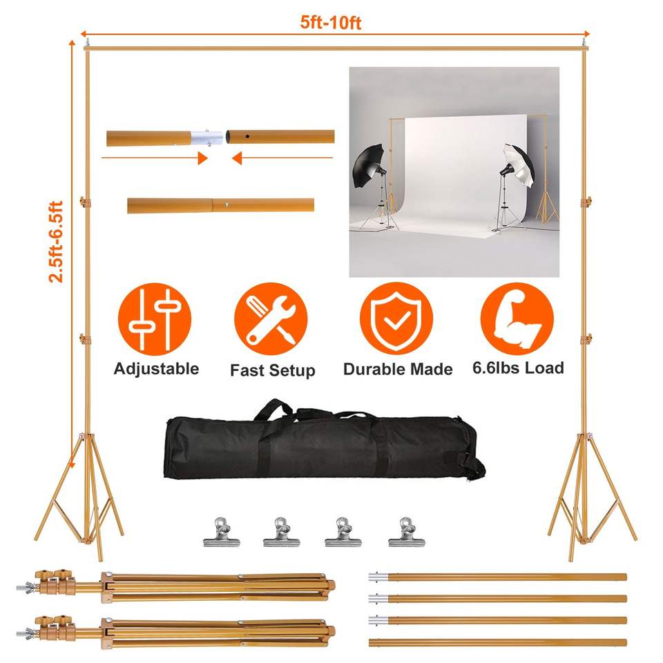 Support de photographie robuste réglable avec sac de transport pour fond de studio photo/vidéo 6,5 x 10 pieds