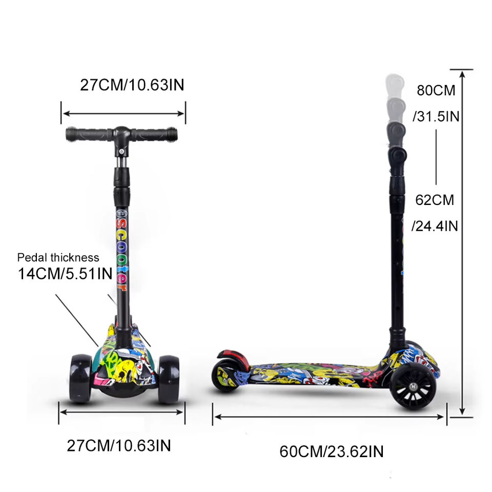 Trottinette Pliante à 3 Roues pour Enfants, Hauteur Réglable, Pont Antidérapant, Utilisation Extérieure, pour les 2-10 Ans