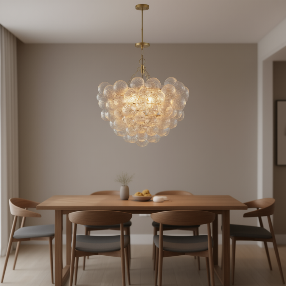 Lustre suspendu en fer doré à hauteur réglable, abat-jour en verre transparent de 23.6 pouces, pour salon, salle à manger, cuisine
