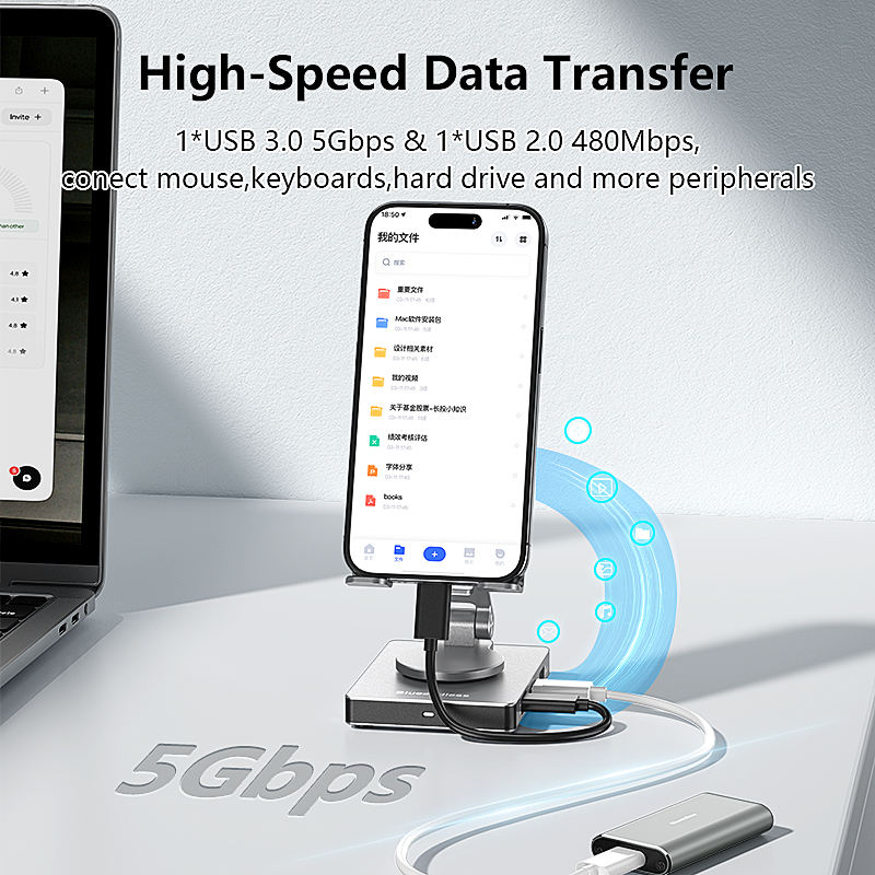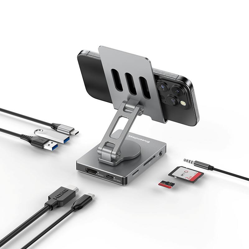 Support de Téléphone Portable Réglable en Hauteur 8 en 1, Hub USB-C Multiprises (8 Ports) Type C vers USB 3.0, Adaptateur 4K HDTV PD