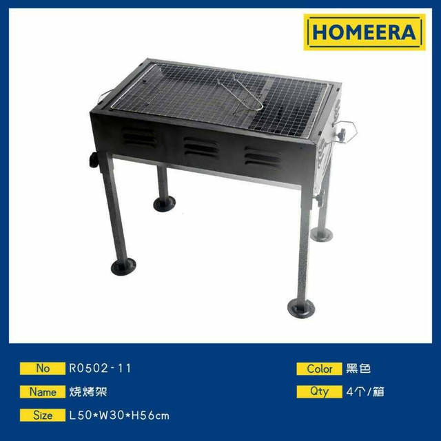 Support de barbecue en fer portable à hauteur réglable en noir 50x30x56 cm pour l'extérieur et la cuisine au gaz naturel pour les fêtes