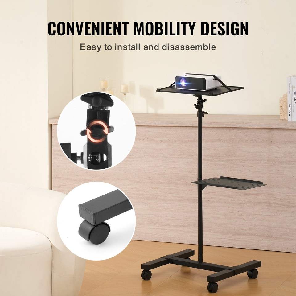 Support de projecteur réglable en hauteur avec roulettes, 22,8 à 57,3 pouces, support de projecteur à double plateau pour montage au sol
