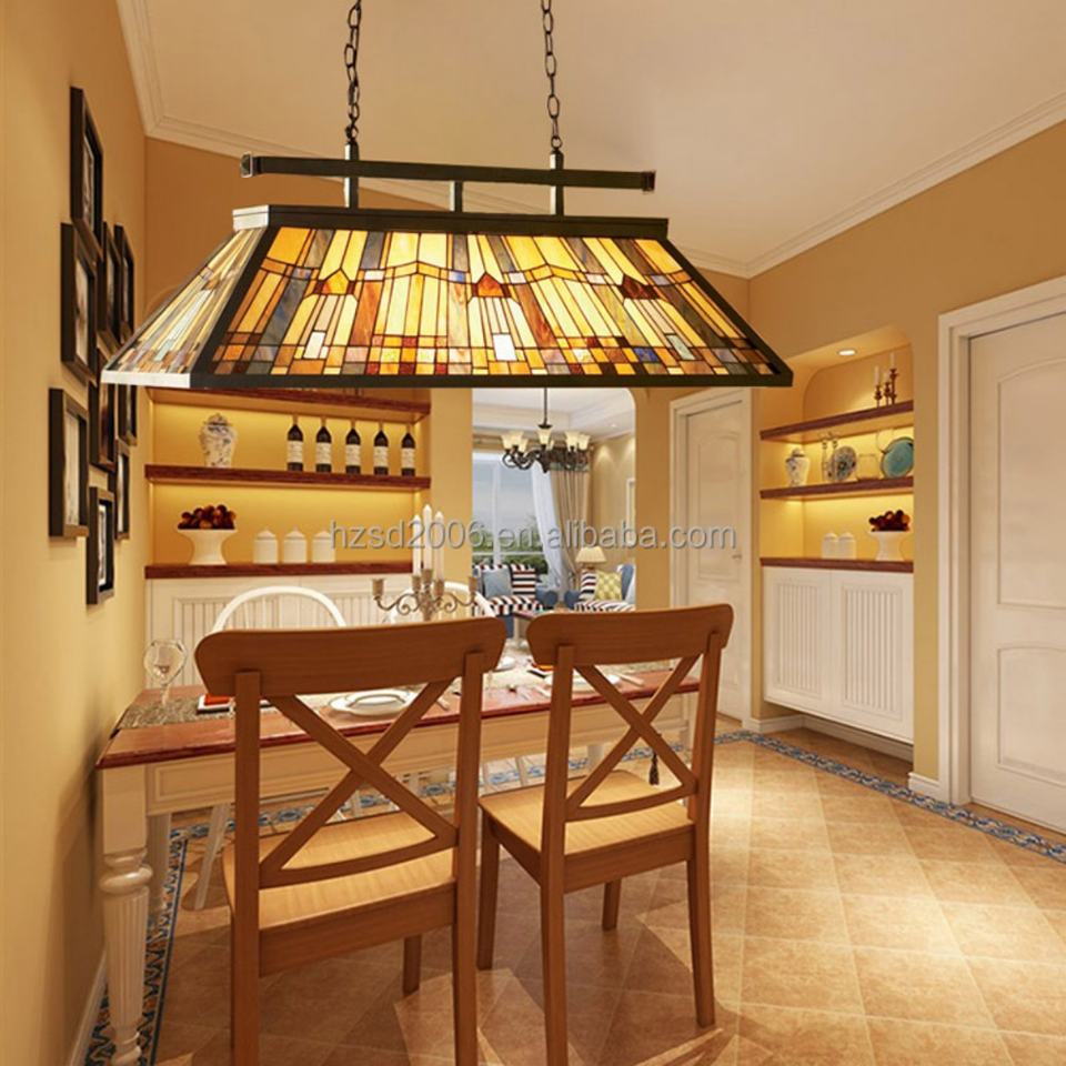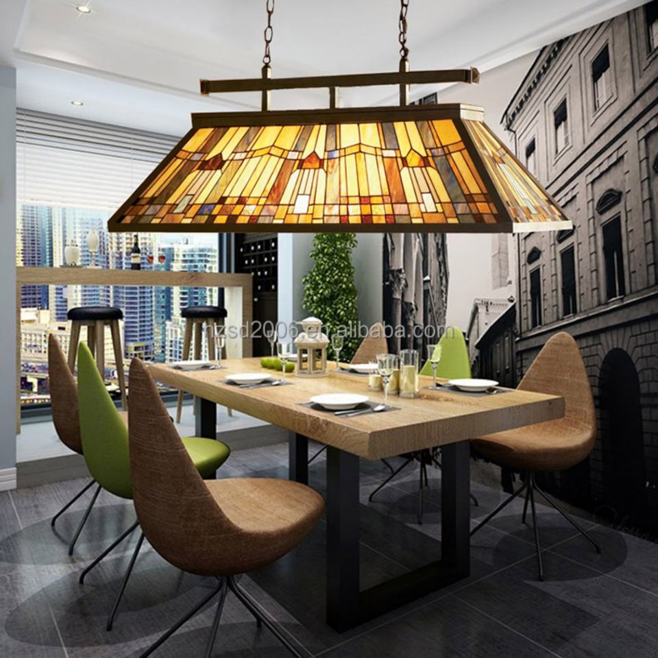 Lustre Tiffany à hauteur réglable en verre teinté, 6 lumières, suspension pour table de billard, éclairage blanc chaud 2700K, protection des yeux
