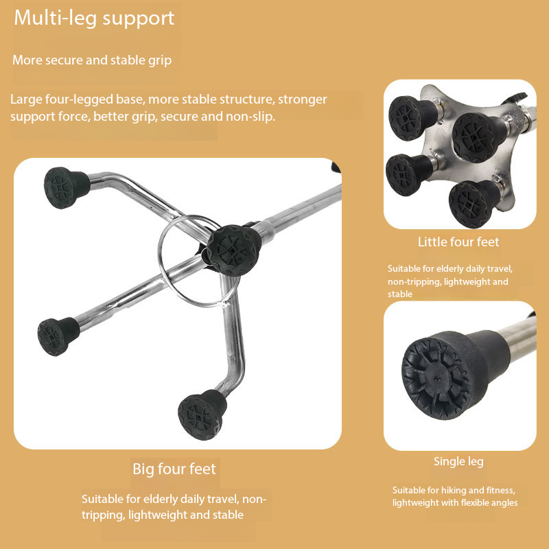Canne de marche réglable en hauteur pour personnes âgées, bâton de marche à quatre pieds