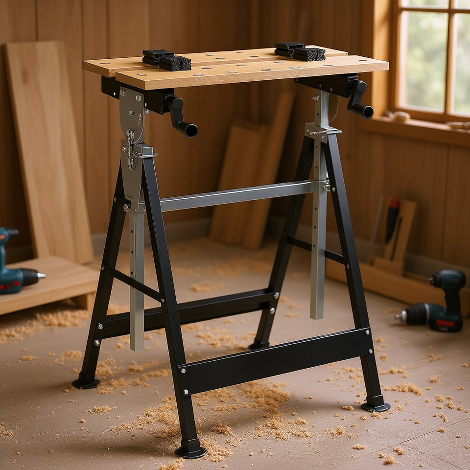 Banc de travail réglable en hauteur, structure en acier, capacité de 220 lb, avec 4 pinces pour le travail du bois
