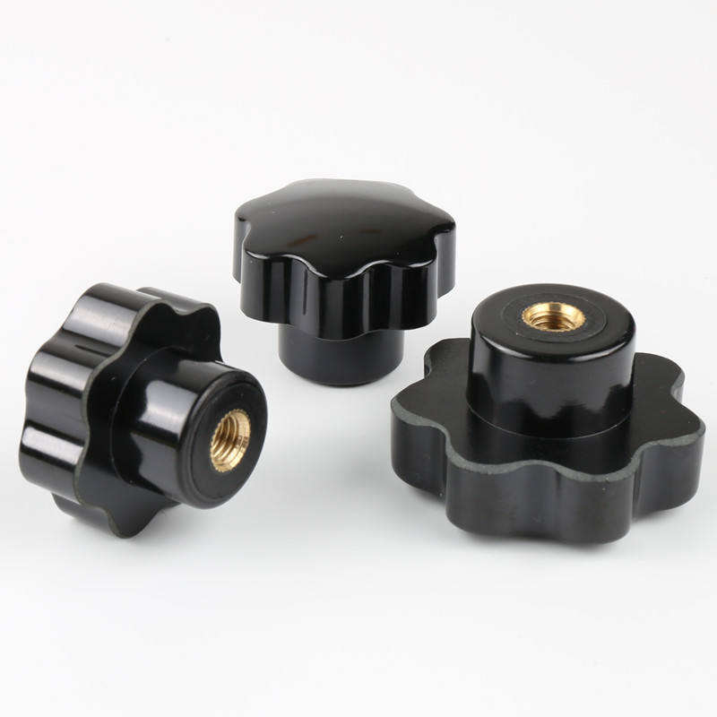 Quincaillerie de cuisine réglable Écrou en forme d'étoile M4-M12 à six étoiles avec vis à trou traversant Tête en caoutchouc Poignée et capuchon en plastique