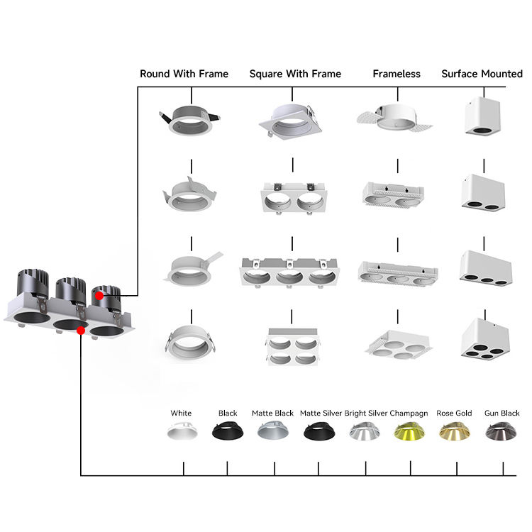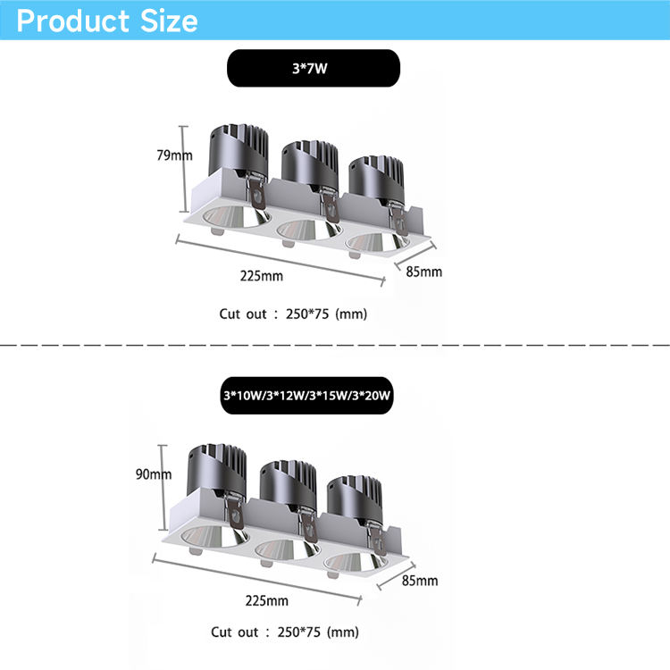 Downlight encastré LED réglable 3*12W AC85 265V Clips à ressort Blanc chaud Plafonnier Spot d'éclairage intérieur carré pour la maison