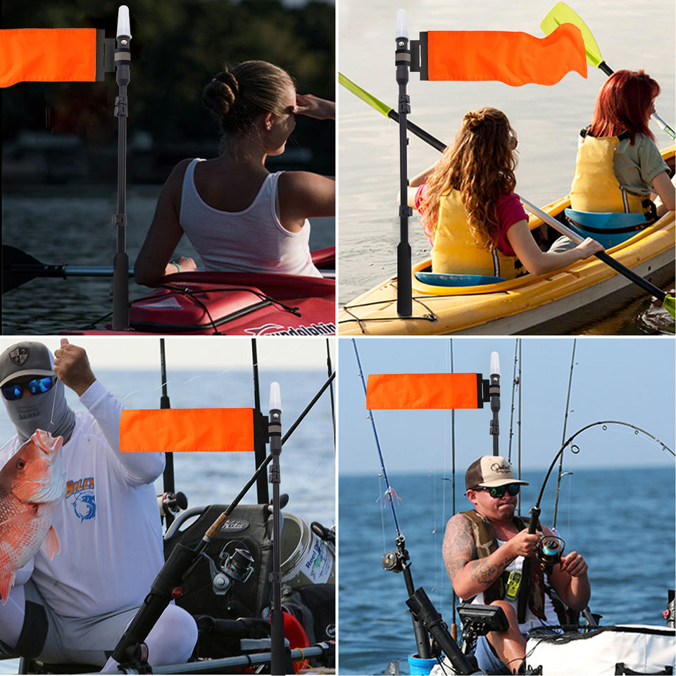 Lumières de kayak à longueur réglable avec kit de poteau de drapeau orange Top White LED Light Boat Navigation Lights for Kayak Fishing Paddling