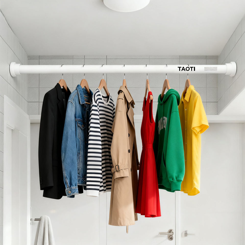 Tringle à rideau de douche escamotable en PC à longueur réglable sans perceuse Livraison rapide Poteau télescopique pour baie vitrée Salle de bain Cuisine Utilisation