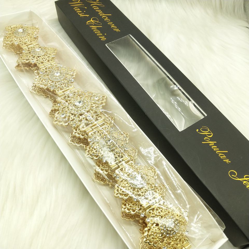 Ceinture marocaine en cristal R à longueur réglable pour femmes bijoux de mariage algérien Caftan chaîne en métal pour vêtements de mariée