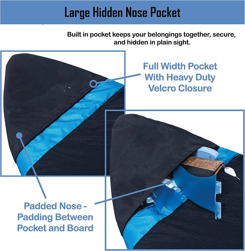 Adjustable Length Wakesurf Board Sock with Padded Nose and Pocket Wakeboard Cover Surfboard Cover