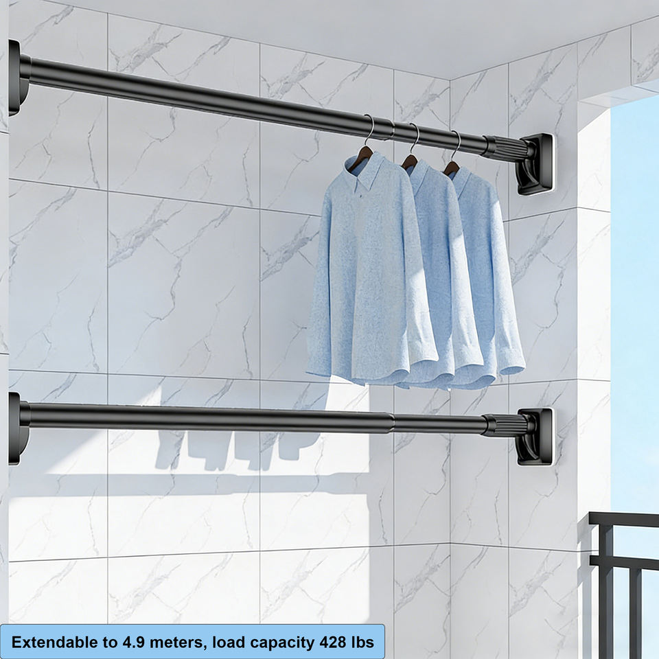 Tringles à rideaux longues réglables, tringle de douche télescopique extensible, tringle à rideau de fenêtre robuste sans perçage