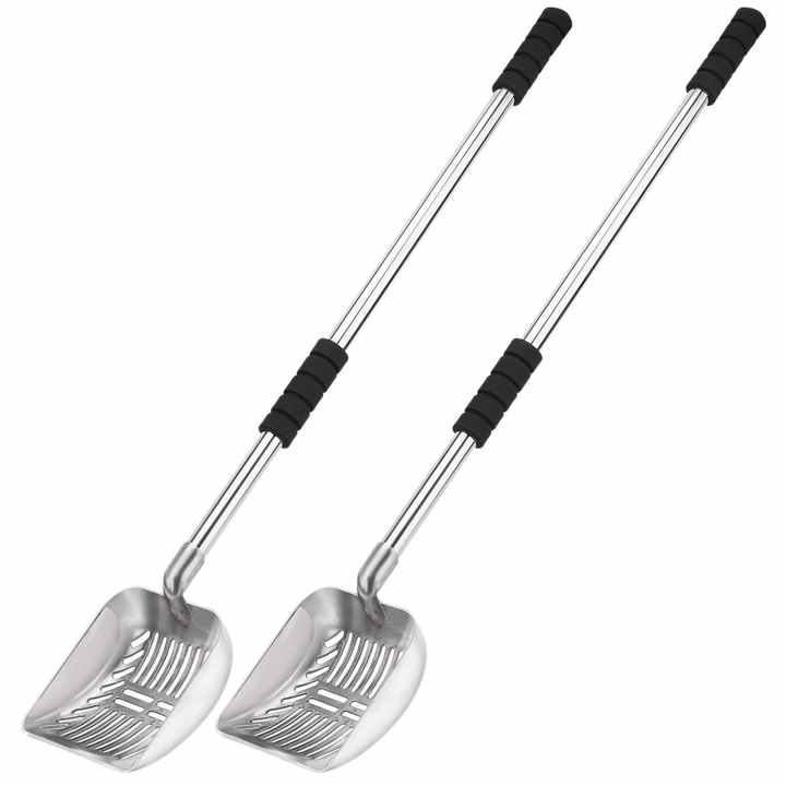 Pelle à litière réglable à long manche | Pelle en métal antirouille profonde pour un nettoyage efficace