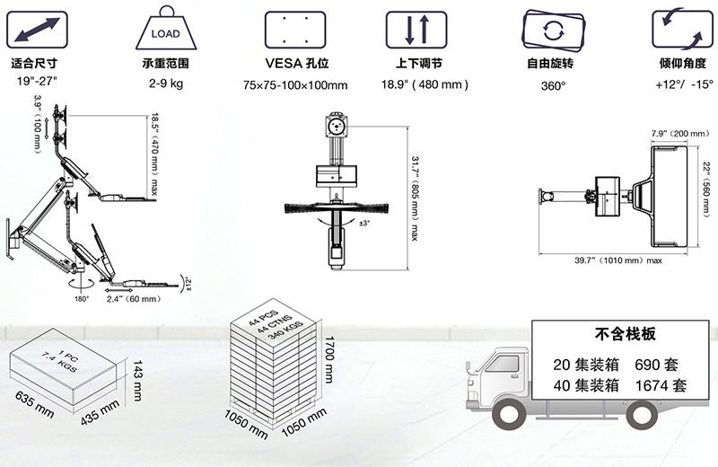 suggested for:screen sizes 19-27 with load range from 3-9 kg