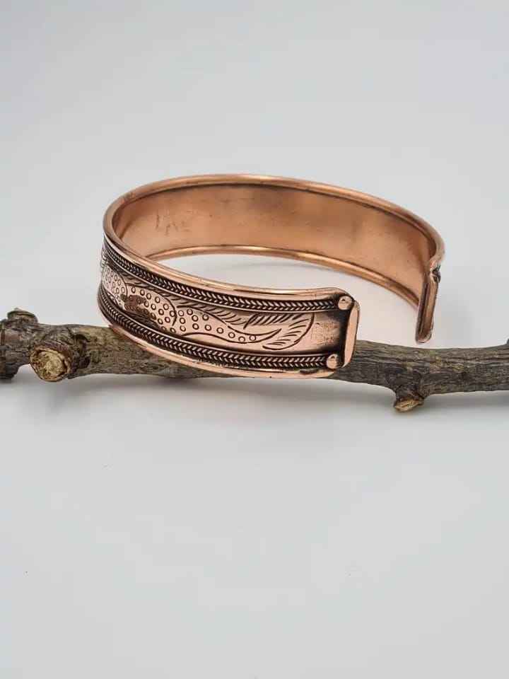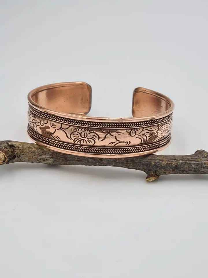 Bracelet de manchette ajustable en cuivre massif magnétique, gravé et imprimé, style traditionnel, pour hommes et femmes, par Glowin fashion