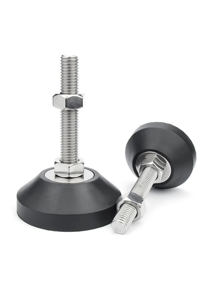 Pieds pivotants modernes en nylon réglables avec vis de fixation au sol M12 et M16 pour chaises, utilisables dans les écoles, les cuisines, les hôpitaux et les salons.