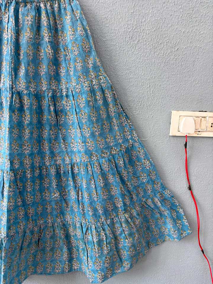 Jupe maxi à poche en coton imprimé naturel réglable, écologique, décontractée pour femmes, bohème, à cordon de serrage, plissée, à étages