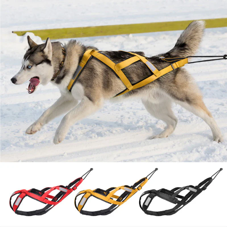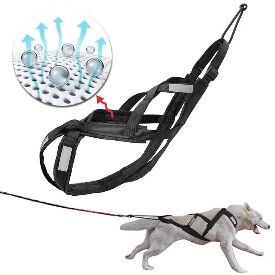 Harnais de traîneau à chien rembourré réglable pour grands chiens Skijoring & Scootering Harnais de soutien de la poitrine