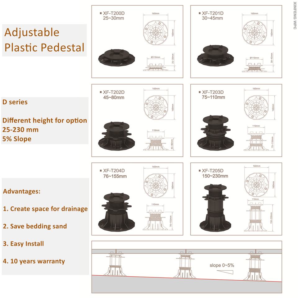 Socles réglables de support de carrelage de sol en granit XF-T201D 30-45mm