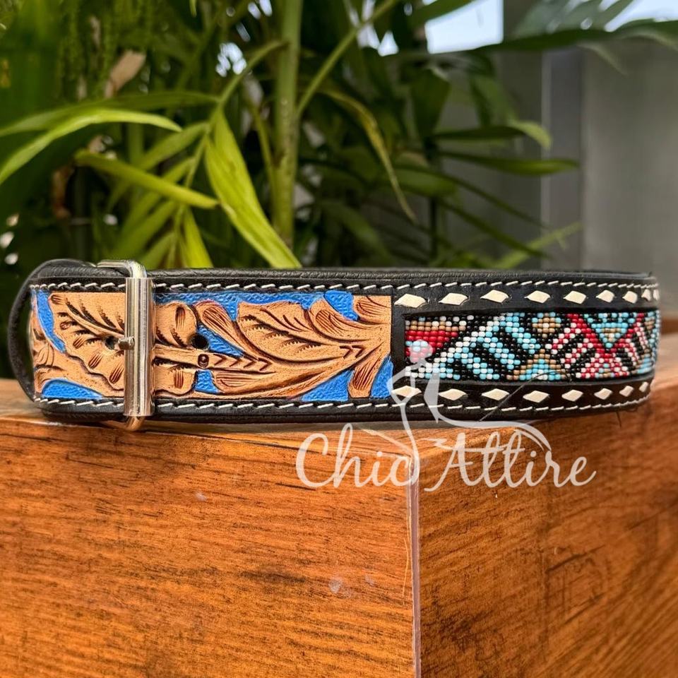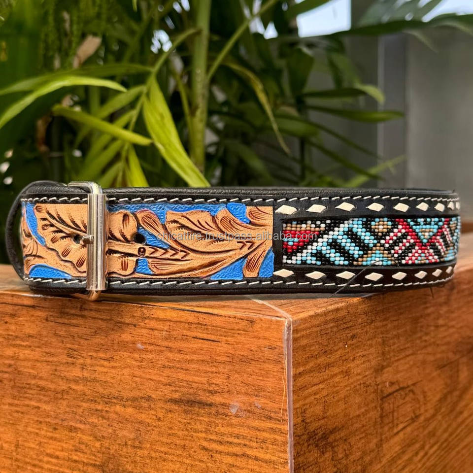 Nom du produit:Collier de chien perlé en cuir véritable