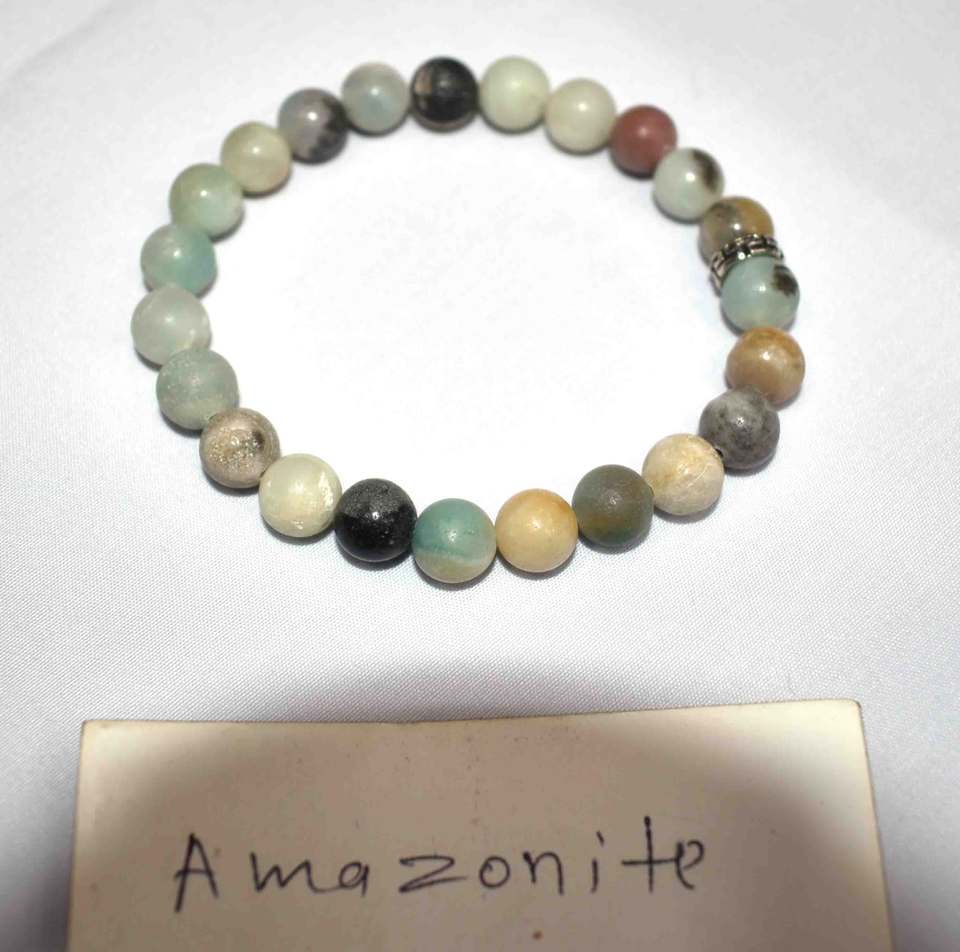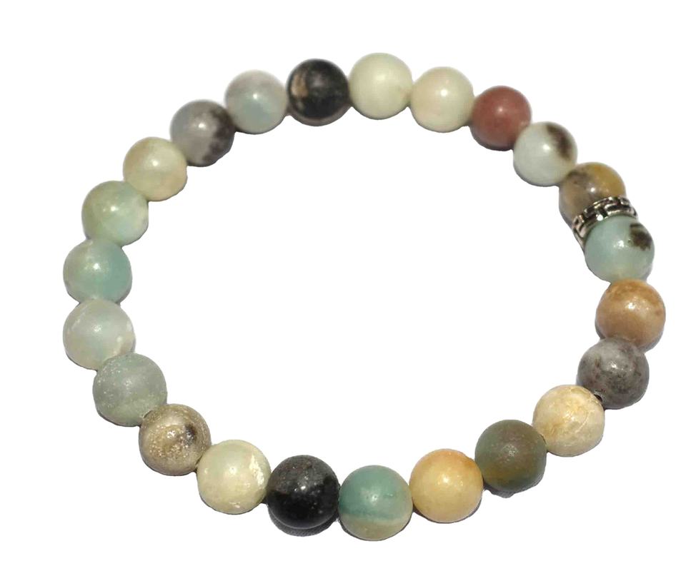 Bracelet ajustable en pierre d'amazonite polie - Design imitation antique, inspiré de l'art asiatique, objet de collection, cadeau original