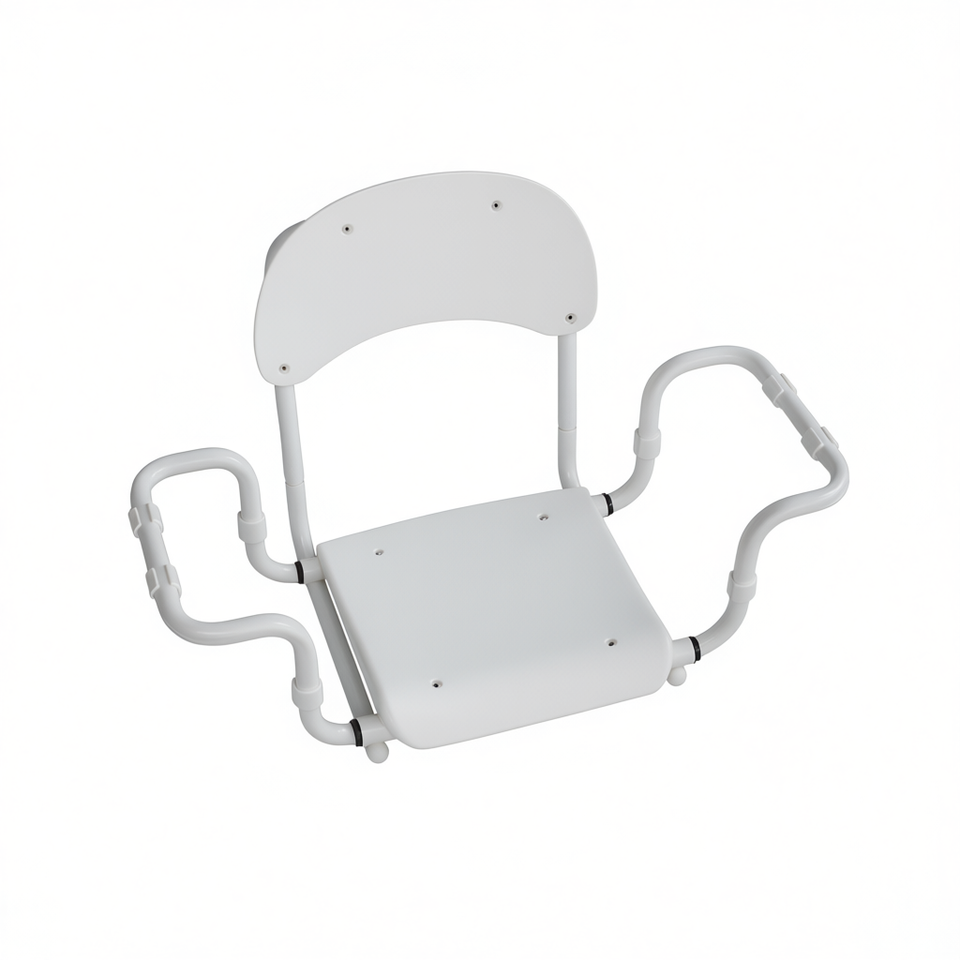 Siège de bain réglable en polypropylène avec dossier, cadre blanc, longueur 36 cm, largeur 40 cm, hauteur 20 cm, équipement de sécurité pour la salle de bain