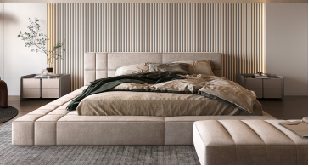Lit Queen & King Size Réglable avec Panneau de Rangement pour Lit Confort Doux Rembourré Style Bois MDF Meubles de Chambre pour Adultes