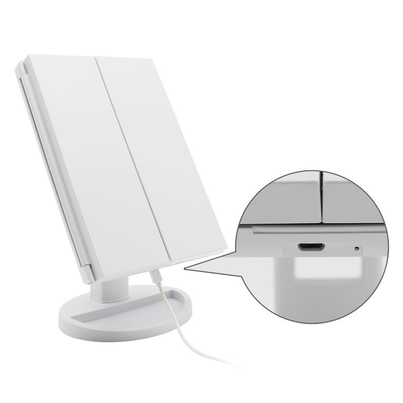 Miroir à rotation réglable Lumières LED Miroir de courtoisie à écran tactile Double alimentation Comptoir Miroir de maquillage grossissant cosmétique