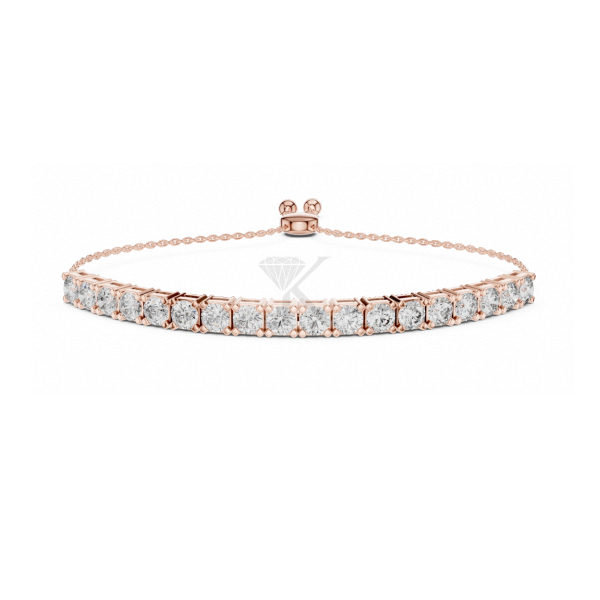 Bracelet Bolo Rond Ajustable avec Diamants de Laboratoire en Or Jaune, Demi-Bracelet Tennis Minimaliste pour Mariage