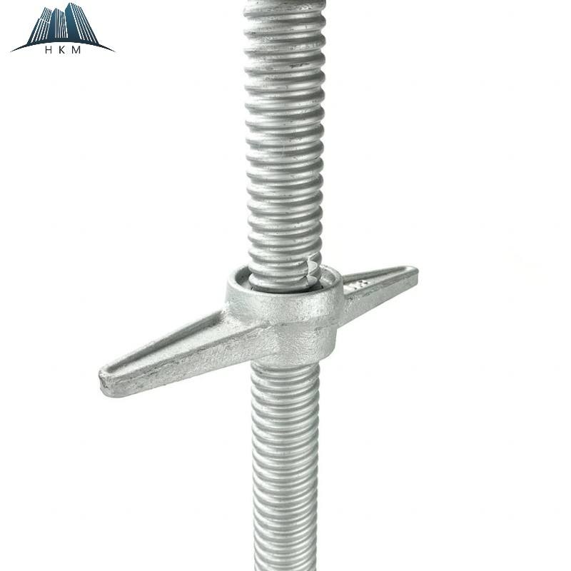 Cric de nivellement réglable pour échafaudage en acier galvanisé avec plaque de base robuste et vis à oreilles