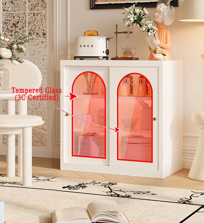 Étagère Réglable Buffet Buffet Armoire avec Portes en Verre Credenza Rangement Nouveaux Meubles de Maison pour Salon Cuisine Entrée
