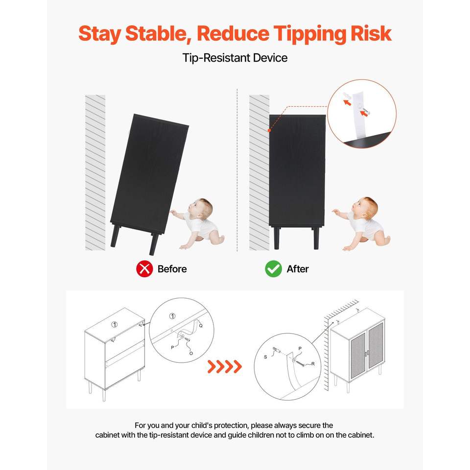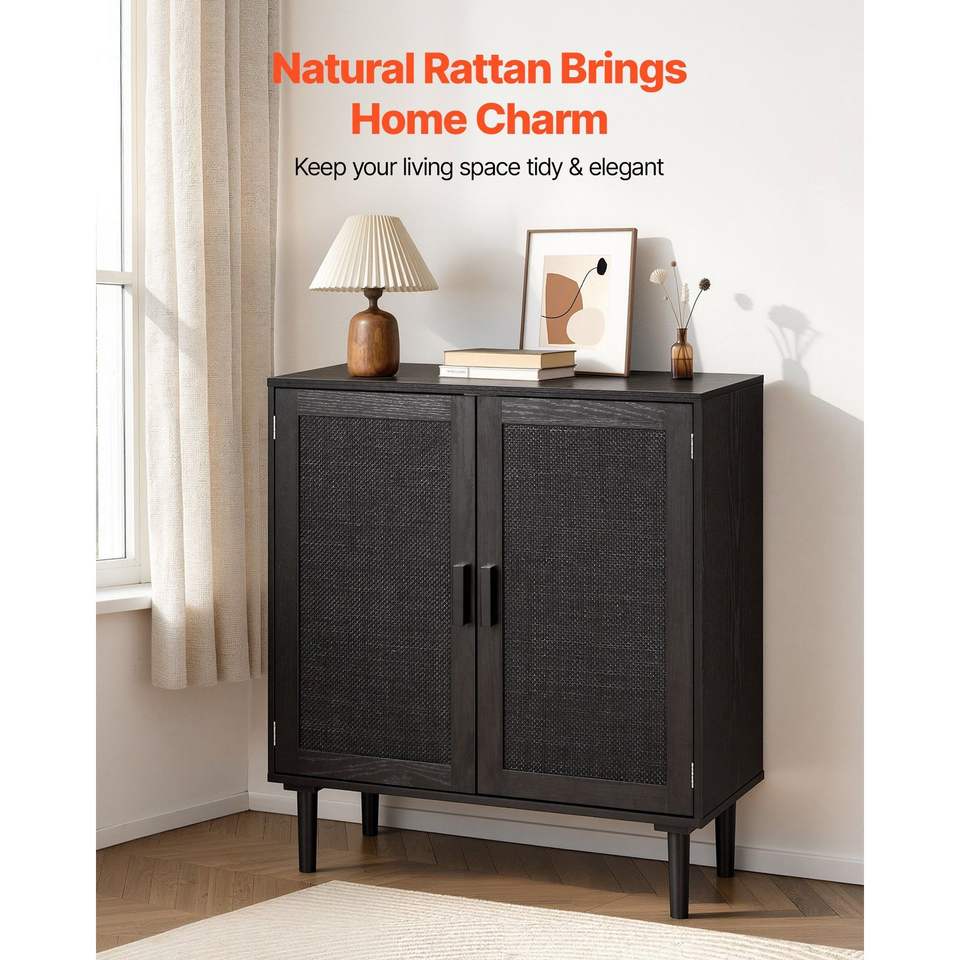 Armoire de rangement en rotin avec étagères réglables et 2 portes magnétiques, buffet d'appoint avec pieds en bois, armoires de salon