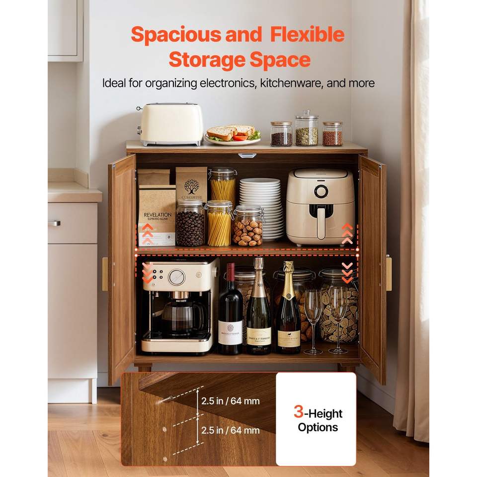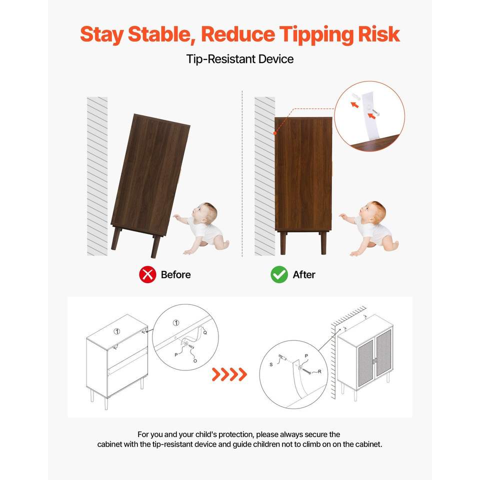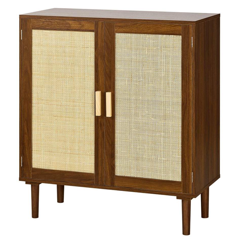 Armoire de rangement en rotin avec étagères réglables et 2 portes magnétiques, buffet d'appoint avec pieds en bois, armoires de salon