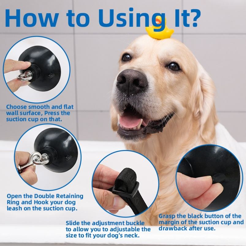 Sangle de retenue réglable en silicone/nylon pour animaux de compagnie Ventouses antidérapantes Écologique Confortable Bords arrondis Chiens Baignade