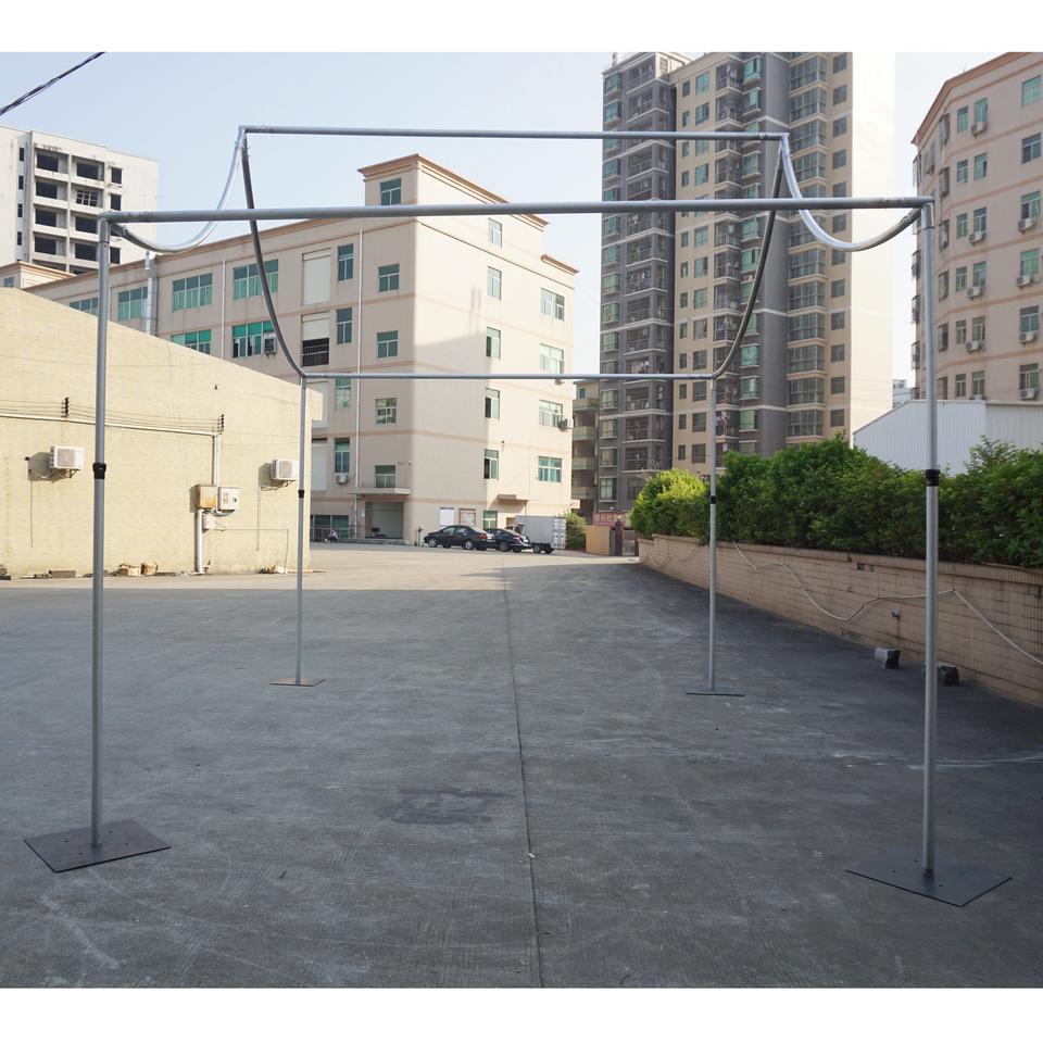 Support de toile de fond portable réglable en aluminium argenté avec système de tuyaux et de drapés pour la décoration d'événements de mariage et de salons professionnels