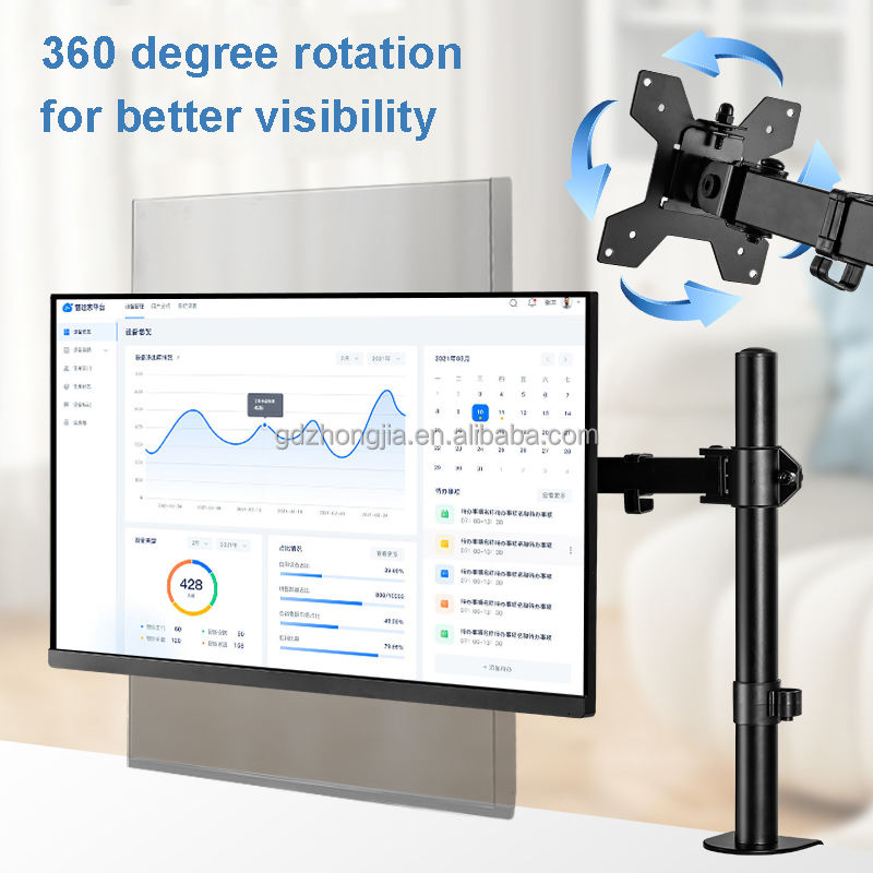Support de Moniteur Unique Réglable 27 Pouces pour Écran d'Ordinateur Nouveau et en Stock, Bras de Fixation Rotatif avec Angle d'Inclinaison de 90 Degrés
