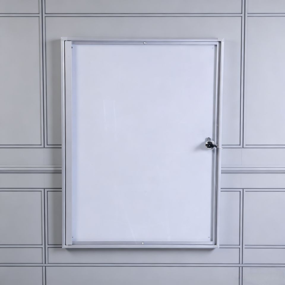 Vitrine verrouillable à taille réglable pour installation murale, idéale pour les restaurants, les bureaux et les bâtiments gouvernementaux
