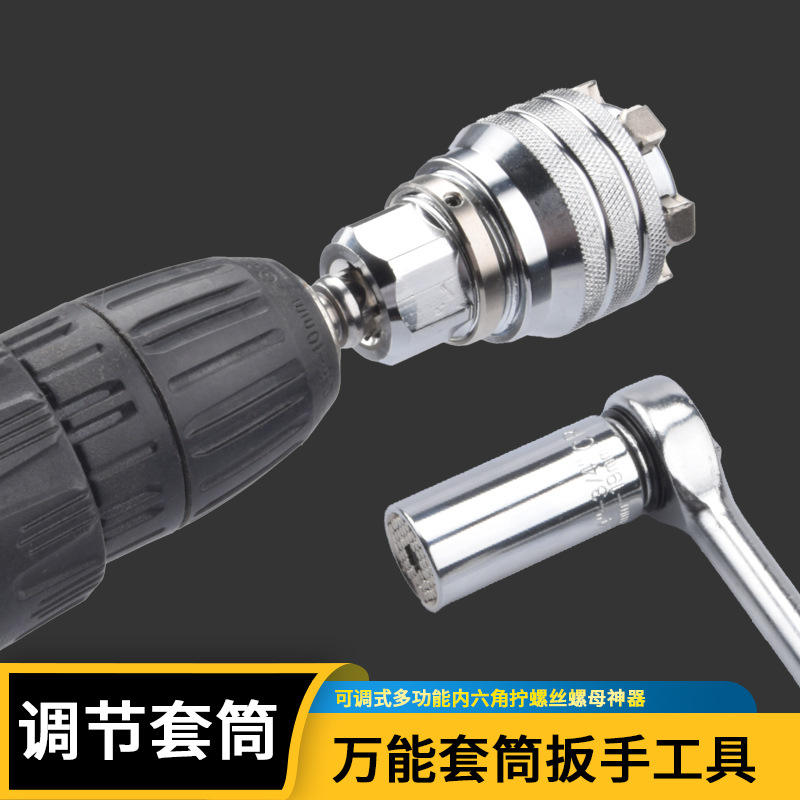 Adjustable Socket Wrench 3/8 In Hex Drive 11mm-19mm Ball Hex For Diy Use