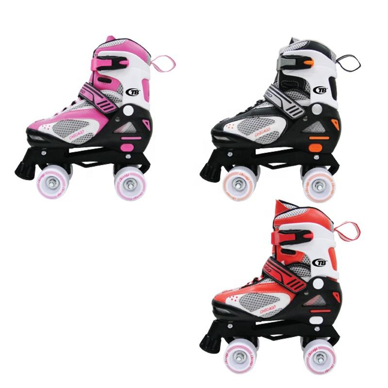 Patins à quatre roulettes réglables pour enfants, bottes souples, 4 roulettes