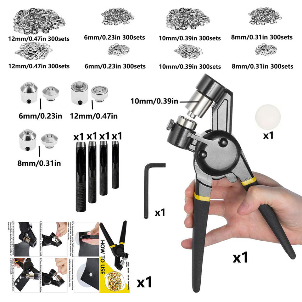 Pince avec 8mm 10mm 12mm meurt + 600 ensembles oeillets