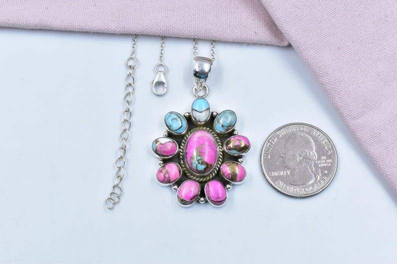 Adjustable Sterling Silver Necklace with Cotton Candy Dahlia Gemstone