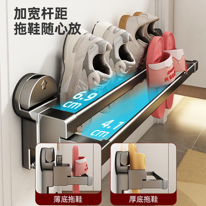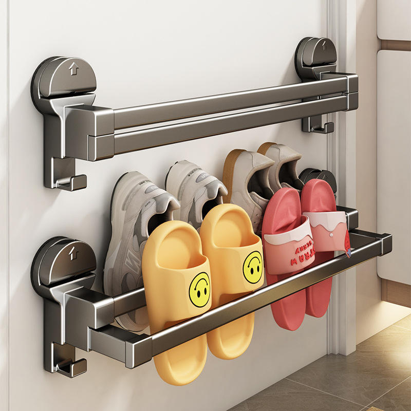 Support à ventouse réglable pour pantoufles, à fixer au mur, pour cuisine et salle de bain, avec égouttoir intégré et conception à un seul niveau