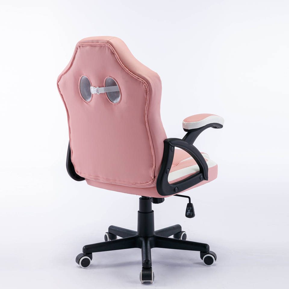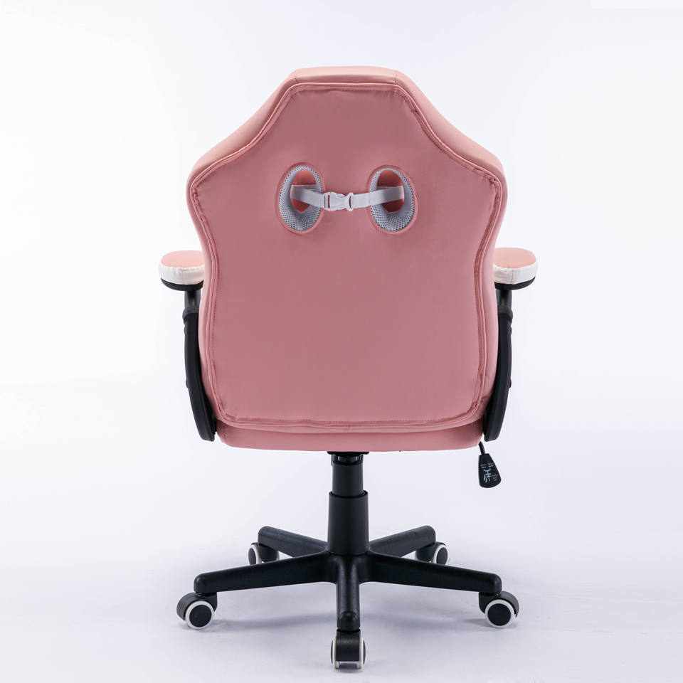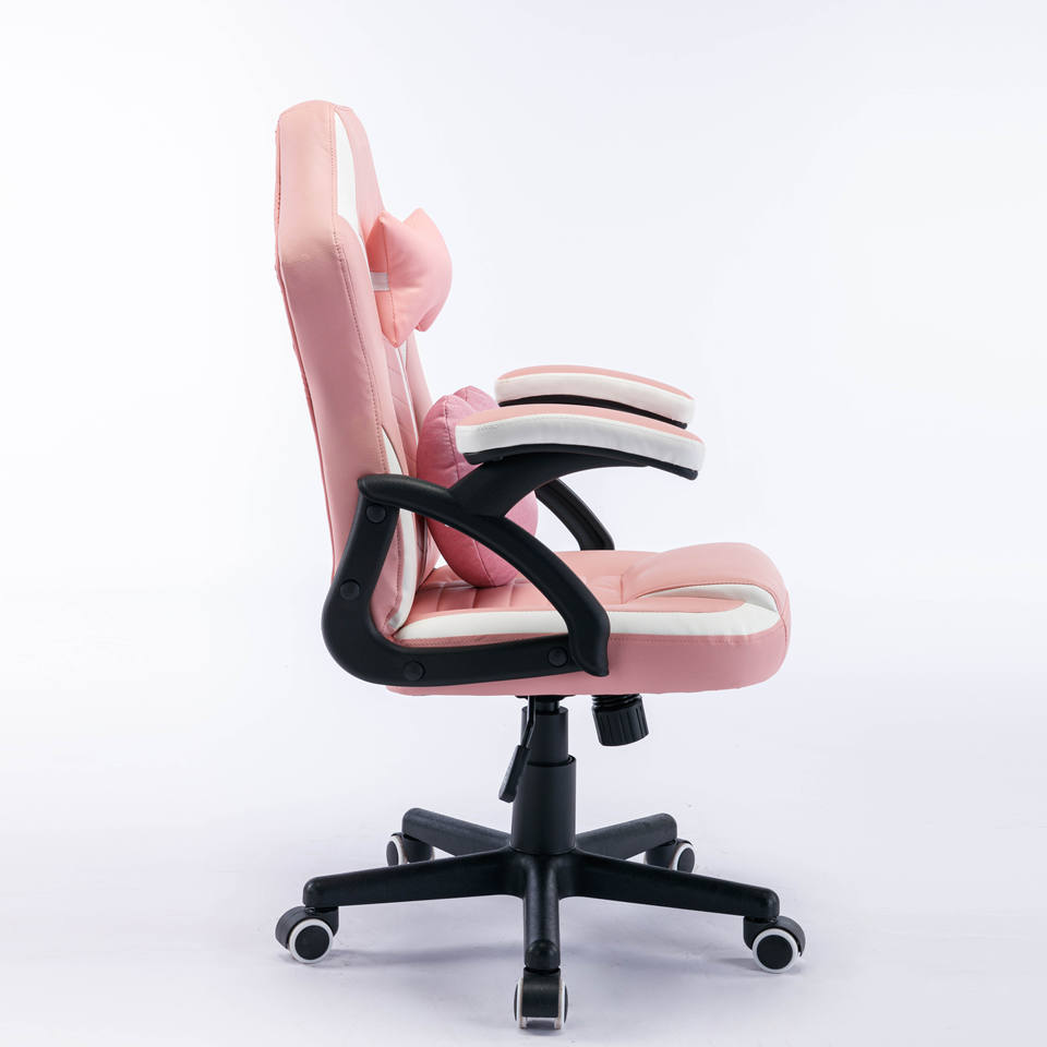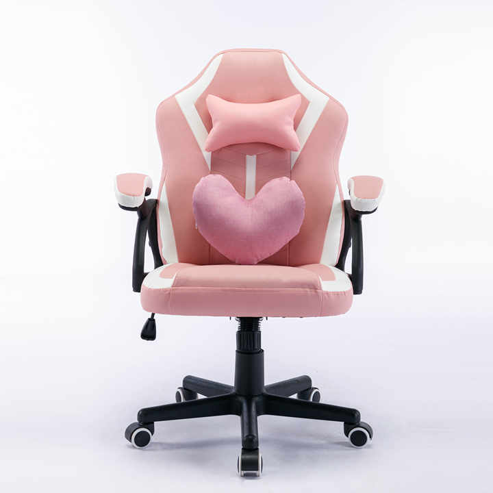 Fauteuil PC Pivotant Réglable avec Coussin Coeur Mignon Chaise de Jeu Ergonomique en Tissu d'Ordinateur Rose pour Filles