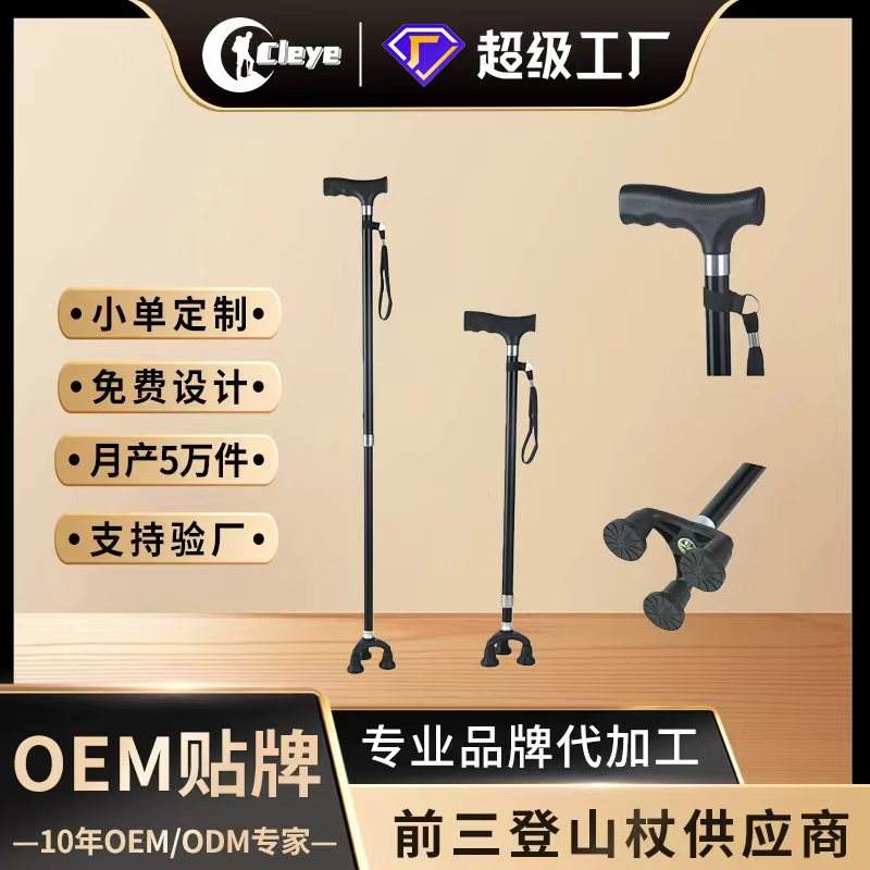 Canne télescopique réglable pour personnes âgées, légère, en alliage d'aluminium, antidérapante, avec base trépied, hauteur de 43,3 pouces