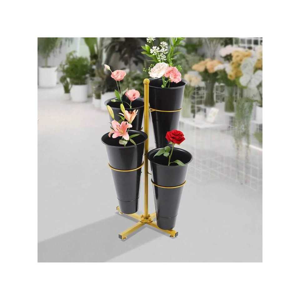 Adjustable Tiered Plant Stand Metal Flower Display Bucket Holder Indoors Outdoors 4 Tier Iron Flower Stand