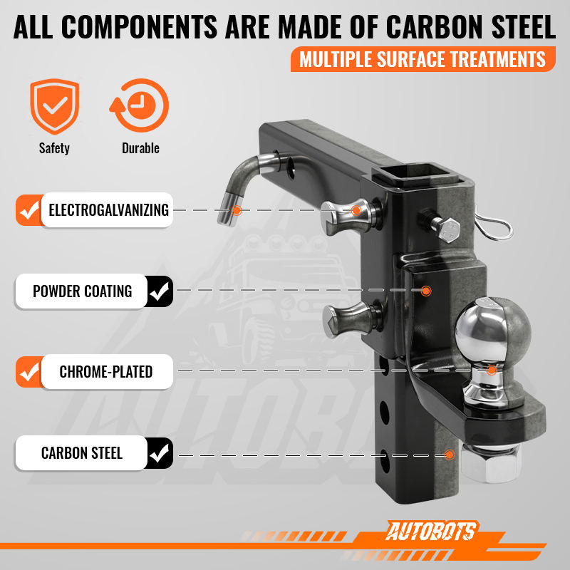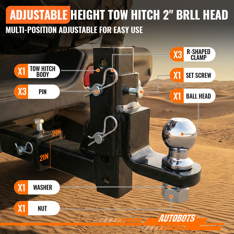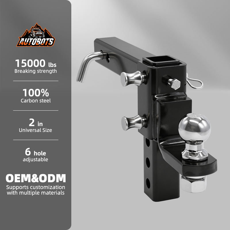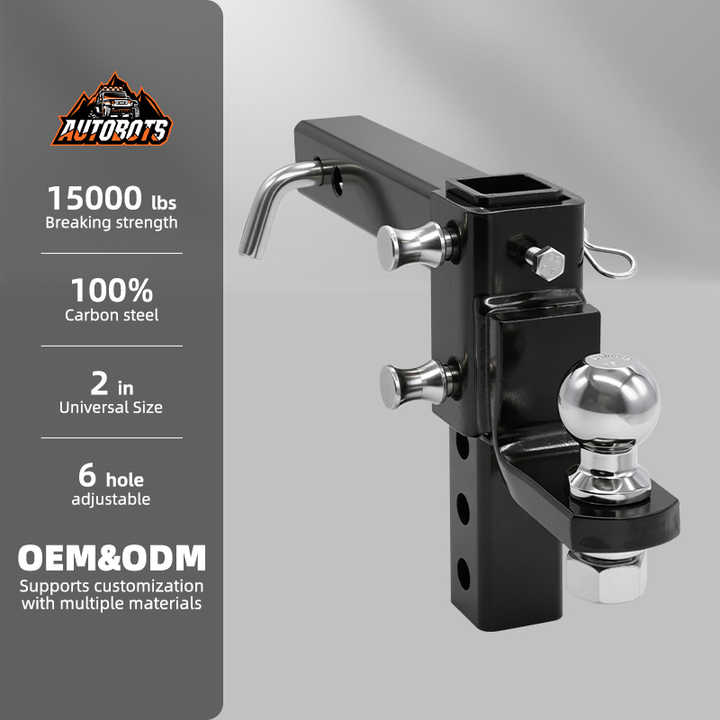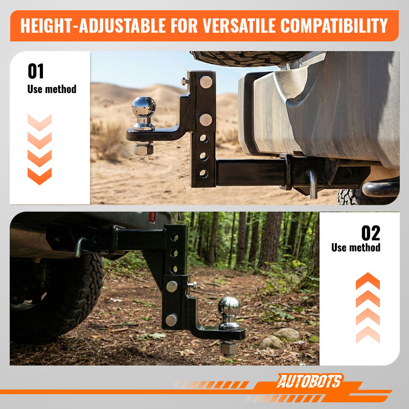 Attelage de remorque réglable pour récepteur de 2 pouces, chute de 6 pouces, montage sur rail pour boule d'attelage, capacité de 15 000 lb, boules de 2 et 2-5/16 pouces